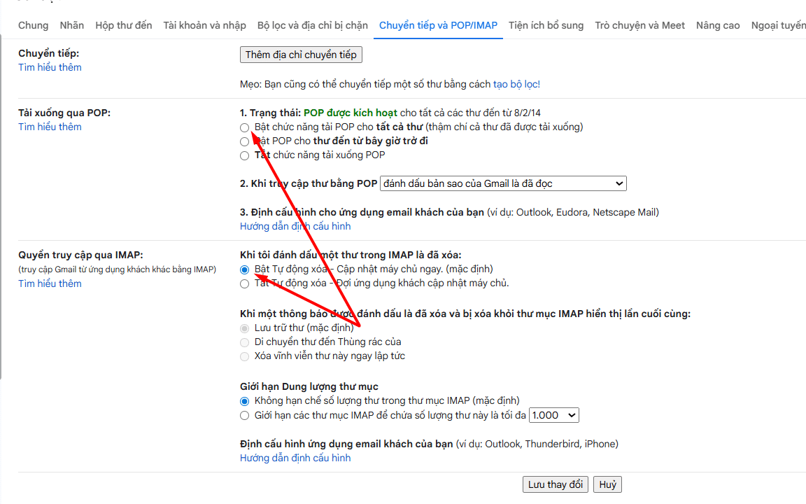 Cài đặt → Xem tất cả cài đặt → POP/IMAP → Bật IMAP