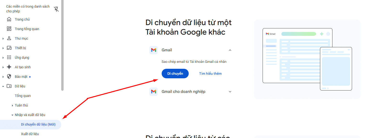 3. CÁC BƯỚC CHUYỂN DỮ LIỆU GMAIL FREE SANG GOOGLE WORKSPACE