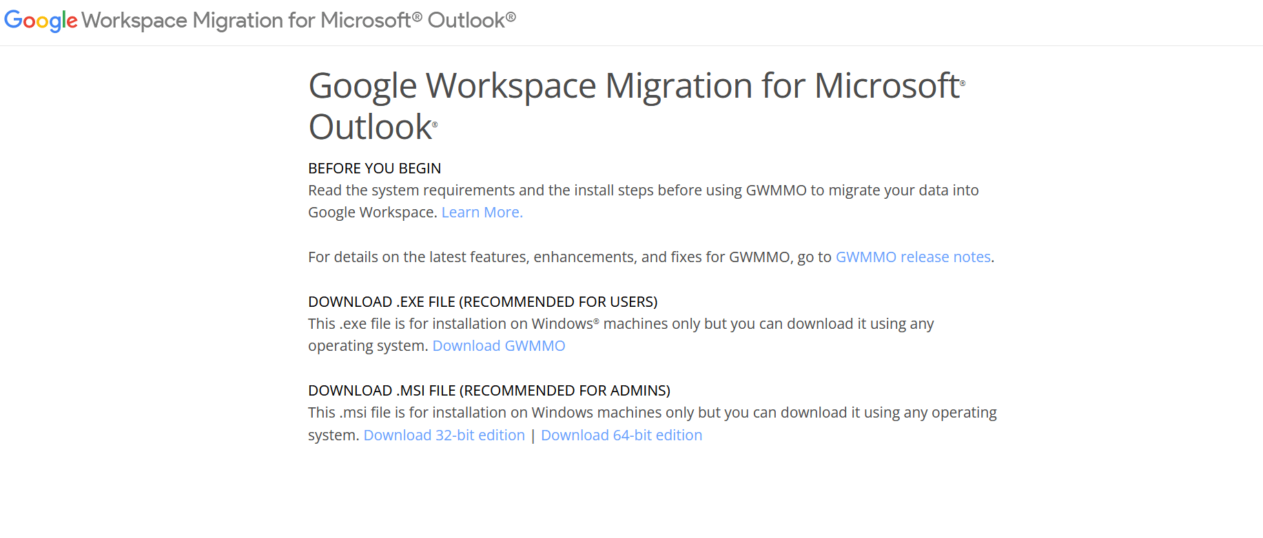 Trước khi chuyển dữ liệu bằng công cụ Migration for Microsoft Outlook (GWMMO), bạn cần chuẩn bị như sau: