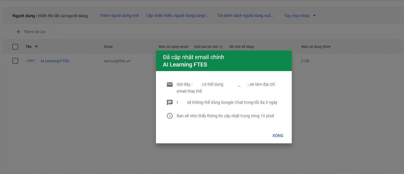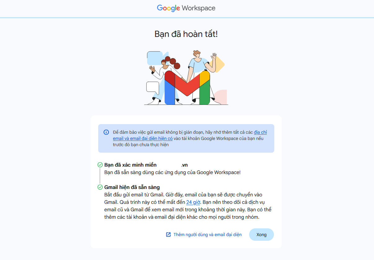Như vậy là các bạn đã có thể thay đổi tên miền thành công trên nền tảng email Google Workspace. Chúc các bạn thành công !