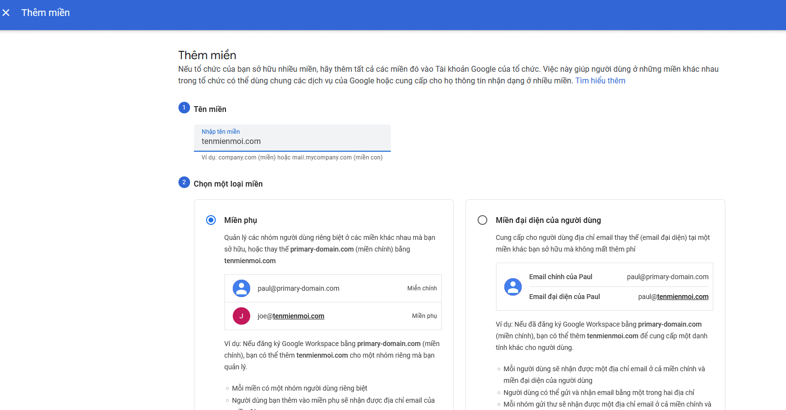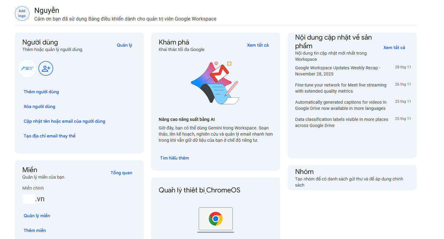 Việc đổi tên miền email trên Google Workspace thường xảy ra khi doanh nghiệp đổi brand, đổi domain kinh doanh hoặc muốn dùng tên miền chuyên nghiệp hơn. Google Workspace cho phép thêm domain mới và đổi địa chỉ email người dùng sang domain mới mà không mất dữ liệu.