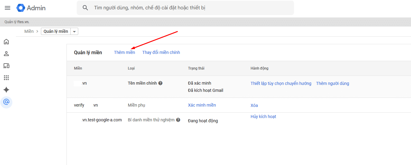 - Chọn “Thêm miền” để thêm tên miền mới cần thay đổi vào