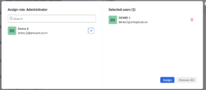 Bước 3: Tìm kiếm và chọn tài khoản nhân viên muốn nâng quyền. Nhấn Assign.
