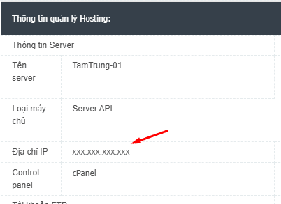 Trong đó xxx.xxx.xxx.xxx  là IP hosting đã lấy ở trên.