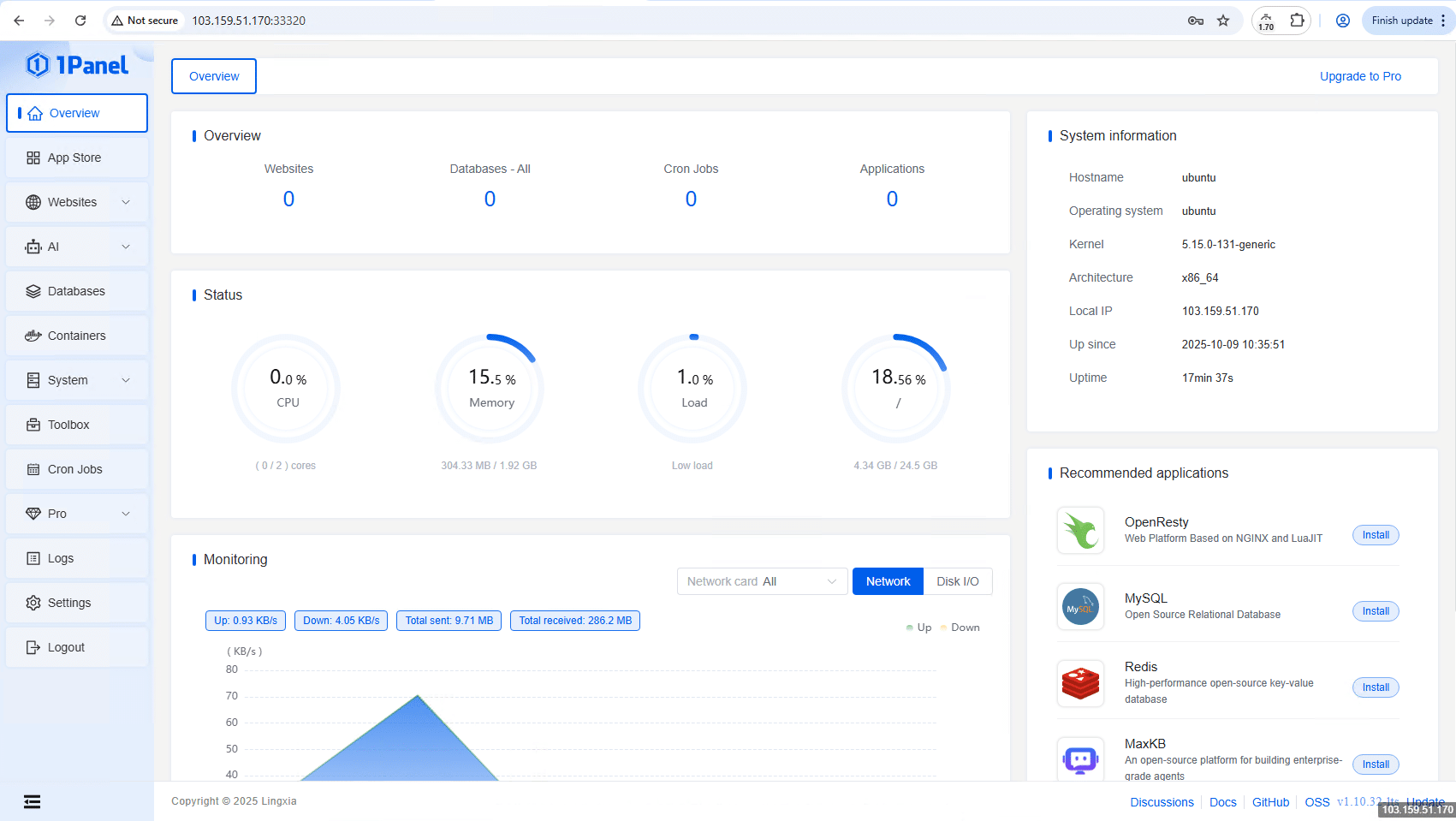 OnePanel – Control Panel mã nguồn mở cho Ubuntu: Hướng dẫn cài đặt & cấu hình cơ bản