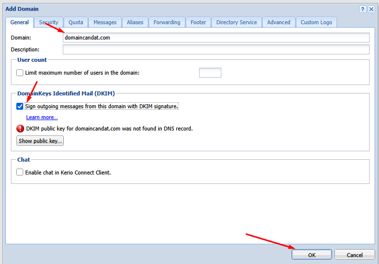 Lưu ý: Số lượng người dùng trong cột Số lượng người dùng trong danh sách miền sẽ chuyển sang màu đỏ bất cứ khi nào vượt quá giới hạn này. Và sau đó nhấn OK